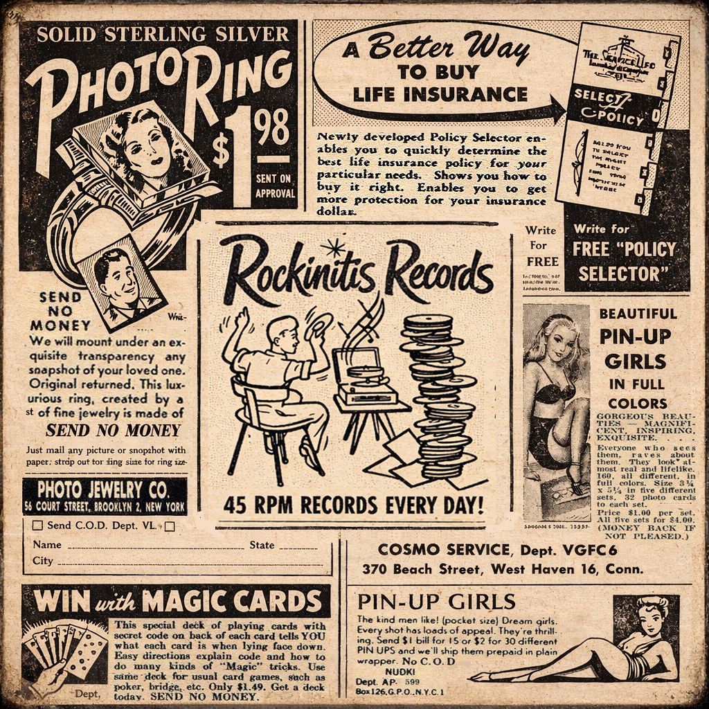 sales every day on our Instagram! click here: https://www.instagram.com/rockinitis_ JAck king - dance everybody • Reissue £16.00 WAX NERD sticker £3 Fats Domino sticker £3 GYRO DISC 45 RPM Adapter for 7″ £20 SURF MUSIC 45rpm Adapter £12.00 ART ADAMS Alternative takes • reissue £15.00 Hasil Adkins – Chicken walk £3.00 Royce Clark – orange wax! £16.00 Tony Garo & Don Philips – green wax £16.00 Benny Joy – Dixie records • sticker £3.00 daily sales on instagram: rockinitis_