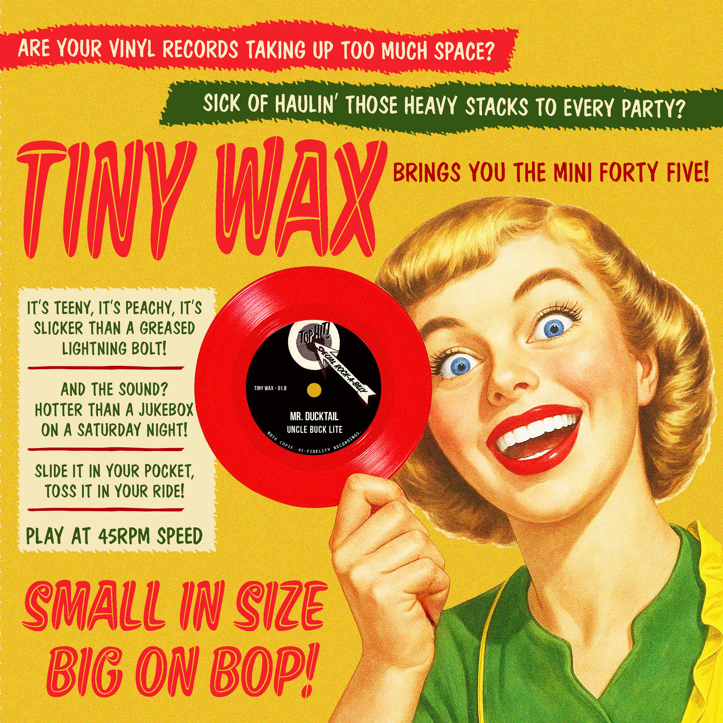 For the very first time on the market, behold the mini rock-a-billy 45s! These tiny rock-a-billy treasures spin at 45 rpm, look absolutely stunning, and are without a doubt the must-have item for any serious (or not-so-serious) vinyl lover’s collection. But beware, we only have a very limited quantity!